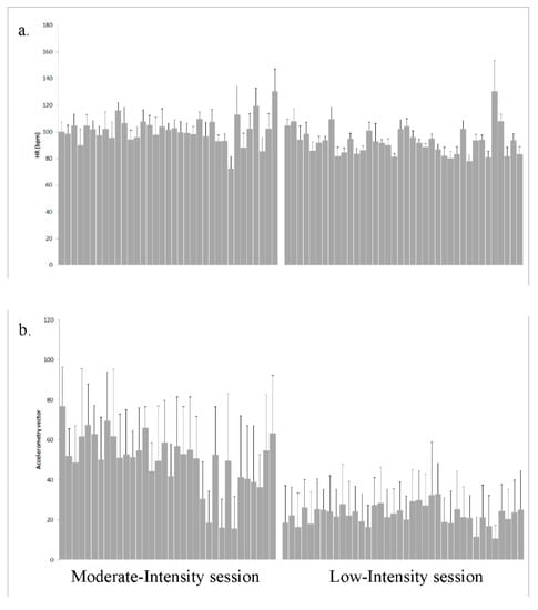 3.1. Heart Rate and Accelerometry Correlations in Different Sessions