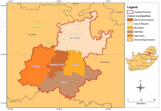 Map of Gauteng Province and its five municipalities (Source: Thandi Kapwata, South African Medical Research Council).
