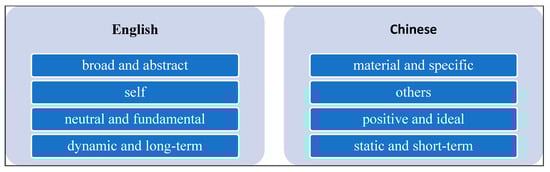 As summarised in Figure 4, the interviews suggested that the wellbeing construct takes on very different meanings in English versus Chinese. In terms of scope, participants perceived wellbeing as broad and abstract in English, versus materialistic and specific in Chinese. Wellbeing was perceived as focussing on the self in English versus others in Chinese. For instance, one participant noted: “I will think more about the interpersonal relationships, such as friends and family in Chinese. But if I think it in English, I will consider more about myself, like how to manage myself”. Wellbeing was seen as neutral and fundamental in English, versus being positive and ideal in Chinese. For instance, one student noted “when I think it in Chinese, I will think it to be more positive. But if I listen to the word in English, I will think it more neutral, which could possibly include both positive side and negative side”. Finally, wellbeing was seen to be dynamic and long-term in English versus static and short-term in Chinese.