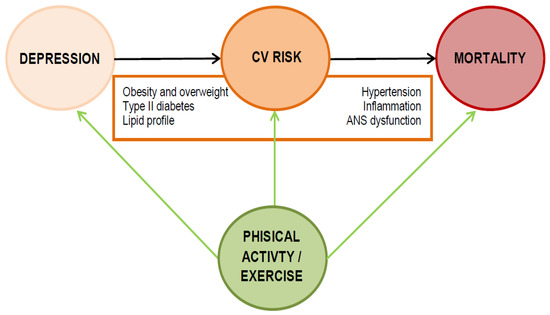 Effects of exercise in the relationship between depression, cardiovascular risk and mortality. ANS: Autonomic Nervous System.