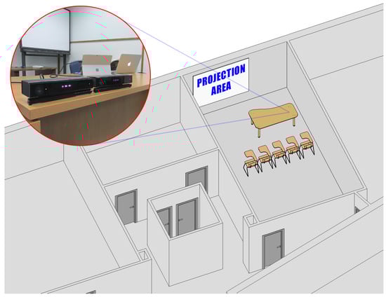 Arrangement of Kinect devices in the classroom. Space previously analyzed with BIM (Building Information Modelling) tools.