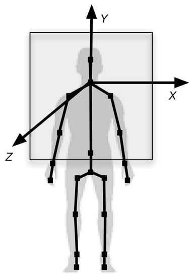 Data obtained by the Kinect sensor includes information of depth measures and, therefore, of the coordinates (x, y, z) of the objects present in the scene. In the case of a human body, it obtains the coordinates of each of the 25 joints that it detects for each skeleton. Each joint is identified by its name and position and it is measured with three coordinates (x, y, z) where (x, y) define the position and (z) represents the distance to the sensor, according to the coordinate space shown in Figure 4.