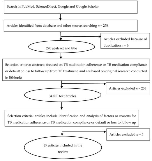 - Tola, H.H.; Holakouie-Naieni, K.; Tesfaye, E.; Mansournia, M.A.; Yaseri, M. Prevalence of tuberculosis treatment non-adherence in Ethiopia: A systematic review and meta-analysis. Int. J. Tuberc. Lung Dis. 2019, 23, 741–749. [Google Scholar] [CrossRef]