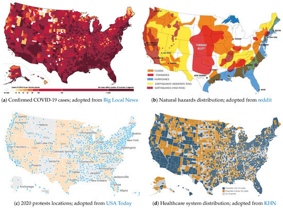 The year 2020 will be remembered in the U.S. for several reasons: (1) The coronavirus began to spread throughout the nation starting in February, with the first confirmed case reported on 21 January, according to CDC (https://www.cdc.gov/mmwr/volumes/69/wr/mm6918e2.htm). (2) There were multiple natural hazards (NH) around the country, including two devastating dam failures in Michigan and over 500 earthquakes in western Nevada (https://www.sfgate.com/earthquakes/article/Nevada-Tonopah-earthquakes-6-5-aftershocks-15283968.php), and an above-normal Atlantic hurricane season expected (https://www.cnn.com/2020/05/11/us/2020-atlantic-hurricane-season-fast-facts/index.html). (3) Complex emergency (CE) situations arose at both national (e.g., Black Lives Matter protests) and international (e.g., U.S.–China and U.S.–WHO tensions) levels. Other notable conditions included the ongoing climate crisis and economic contractions due to nation-wide stay-at-home orders. For example, GDP fell 4.8% in Q1 2020, and unemployment increased by more than 10% between April and May. Figure 1 illustrates the combination of multi-hazard factors that many citizens are facing.