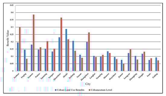 The Coupling and Coordinated Development from Urban Land Using Benefits and Urbanization Level: Case Study from Fujian Province (China)