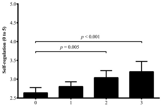 Differences in mean values of self-regulation according to the number of healthy lifestyle habits that children met.