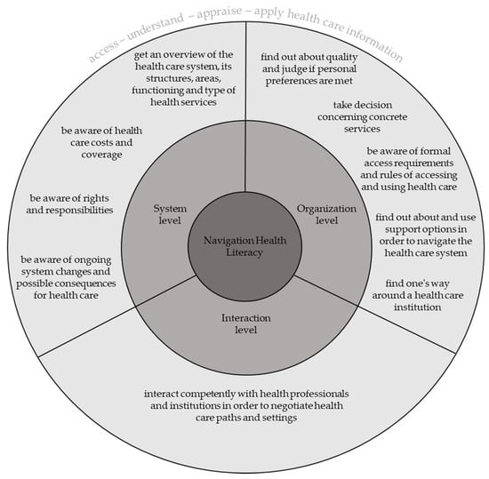 Griese, L.; Berens, E.-M.; Nowak, P.; Pelikan, J.M.; Schaeffer, D. Challenges in Navigating the Health Care System: Development of an Instrument Measuring Navigation Health Literacy. Int. J. Environ. Res. Public Health 2020, 17, 5731. https://doi.org/10.3390/ijerph17165731
