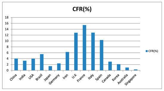 Case fatality rate (CFR) in some affected countries from 21 January till 14 April 2020 [10].