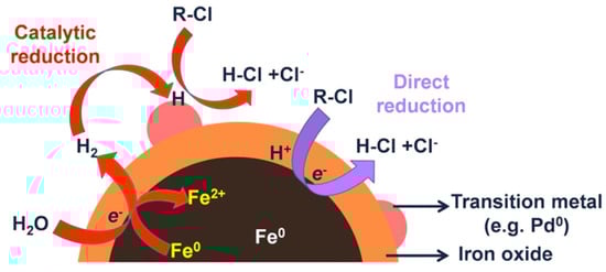 General dechlorination mechanism for BNP and NZVI. Reproduced with permission from Zhao et al. []. Copyright 2016 Elsevier.