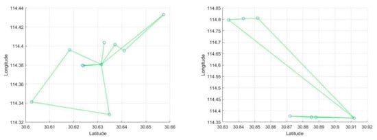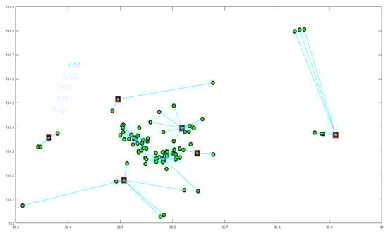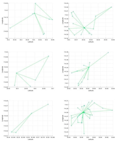 In Figure 6 and Figure 7, the center point of each small area is the medical center of the area, and the green line segment indicates that if two points belong to the same subdivision area, they are connected by a line segment.