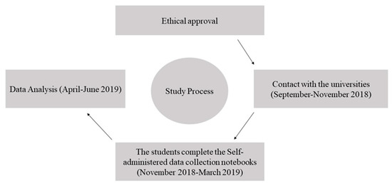 Data were collected from students in the four courses of the nursing degree (September 2018–June 2019) by trained persons, in sessions of 10–15 min’ length during the large group classes. Self-administered data collection notebooks in paper format included the following: