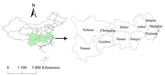 Location of the Yangtze River Economic Zone (YREZ) in China.