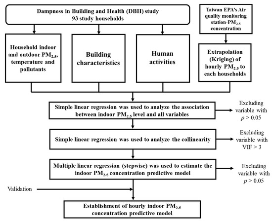 - Step 3: MLR (stepwise) was used to analyze the association between all variables and indoor PM2.5 concentrations. We repeated this process until no more variables could be removed without statistically significant (p > 0.05) changes in the regression model.