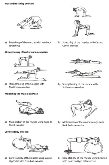 - Searle, A.; Spink, M.; Ho, A.; Chuter, V. Exercise interventions for the treatment of chronic low back pain: A systematic review and meta-analysis of randomised controlled trials. Clin. Rehabil. 2015, 29, 1155–1167. [Google Scholar] [CrossRef] [PubMed]
