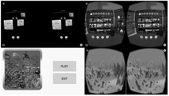 The VR Vox Play glasses were used with an HMD clamping system (weight 330 g) to which a Smartphone (LG Q6) was attached (Figure 1). Two VR mobile applications were installed. The first was a "Fulldive VR" as the first degree of difficulty for the participants, where only tilting movements of the neck are necessary. As a second degree of difficulty, the game “VR Ocean Aquarium 3D” was used, where flexion, extension and rotation movements must be integrated in addition to introducing a sensory element by integrating the sound of the sea (Figure 2).