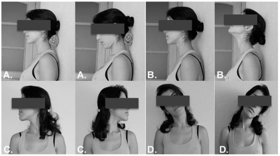 - Yoo, W.-G.; An, D.-H. The relationship between the active cervical range of motion and changes in head and neck posture after continuous VDT work. Ind. Health 2009, 47, 183–188. [Google Scholar] [CrossRef]