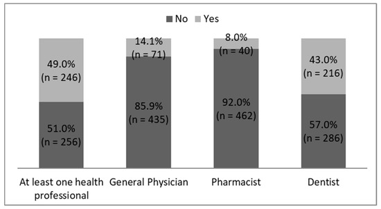 Percentage and number of healthcare professionals questioned about bleeding by respondents with gingival bleeding.