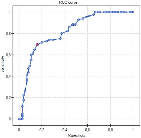 Multivariate analysis of clinical and biochemical parameters was performed using logistic regression analysis. The backward elimination method was used to select predictive variables. The linear nature of dependence between included variable and each predictor was checked using the Likelihood Ratio test (LR test). The goodness of fit was evaluated by the LR test and the Hosmer–Lemeshow test. The significance of logistic coefficients was examined with the Wald’s test. The model prediction quality was evaluated by the ten-fold cross-validation method and the subsequent Receiver Operating Characteristic (ROC) curve with an Area Under the Curve (AUC) as a quality index. The analyses were conducted using the STATISTICA PL v. 7.1. statistical package (Statsoft, Tulsa, OK, USA) and PQSTAT (PQSTAT Software Company, Poznan, Poland). The p value less than 0.05 was considered statistically significant.
