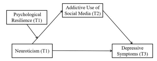 Although some valuable results have been obtained in this study, there are still some deficiencies. First, neuroticism in this study involves a relatively broad personality construct without subdividing different aspects. In future research, the neuroticism personality dimension can be subdivided to distinguish the impact of different aspects on the relationship between addictive use of social media and depressive symptoms. Second, this study used longitudinal data to analyze and provided evidence to support the hypothesized path from the addictive use of social media to depressive symptoms. However, some studies pointed out that depression was a critical antecedent variable of social media addiction [59,60]. Future research can start from this perspective to explore the more abundant dyadic relationship between the two.