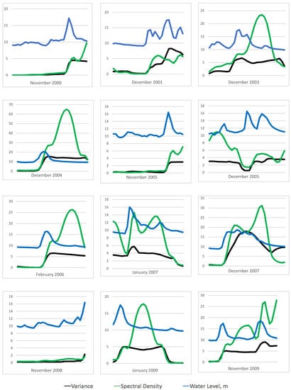 However, based on the results obtained by Kendall’s tau rank correlation analysis, the dates with a significantly strong correlation are different for both indicators. Table 3 shows the result of the EWS from the water level data determined by Kendall’s tau exceeding a threshold value of 0.9 for each CSD indicators’ variance and average spectral density at low frequencies. Note that for this label for the result through Kendall’s tau rank correlation, we label the outcome following Guttal et al. [] based on the strength of the correlation on the time series of CSD indicators. The nearest warning signal will be assigned to respective flood events. If there are warning signals with no corresponding flood events, then they are considered false alarms.