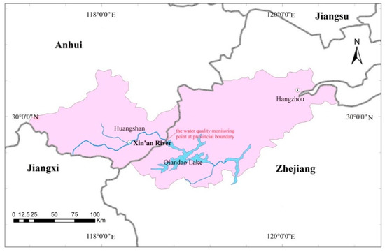 The Xin’an River originates in Huangshan City, Anhui Province and flows into Qiandao Lake across the provincial boundary in Hangzhou City, Zhejiang Province (Figure 1). The Xin’an River is an important ecological security barrier and strategic water source for the Yangtze River Delta in China. In the 1990s, the water quality became increasingly eutrophic downstream of Qiandao Lake [31]. The discrepancy also deepened between the need to protect water resources and economic growth in the upstream and downstream regions. In order to address these issues and promote regional sustainable development, the provincial governments of Anhui and Zhejiang signed the “Agreement on Water Environmental Compensation for Xin’an River Basin” in 2012 [31]. This was the first trans-provincial EC pilot in China and the lateral EC mode for a domestic watershed was also created. In this EC pilot, the central government and two provinces agreed to jointly pay for the WEC scheme. Since 2012, this scheme has undergone three phrases with increasing water quality requirements, as shown in Table 1.