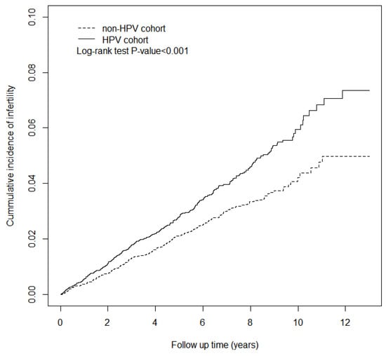 The cumulative incidence of infertility in the human papillomavirus (HPV) cohort and the non-HPV cohort.