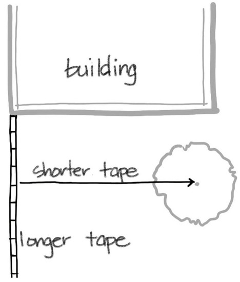 When creating a basemap, basic principles of geometry are useful. Shorter and longer measuring tapes should remain perpendicular to mimic the grid on the graph paper.