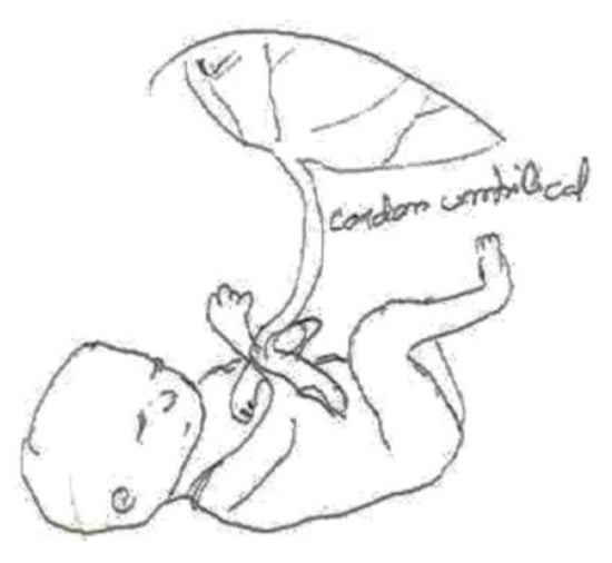 In the following Figure 1, we can see the connection between the fetus and the placenta through the umbilical cord. The pregnant woman’s body is absent. It emphasizes the function of the umbilical cord as the nexus connecting the placenta with the body of the mother.