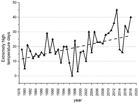 The number of days with temperature above 35 °C in Nanchang from 1979 to 2018. Air temperature data source: National meteorological information center.