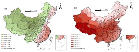 There is a significant positive correlation between average years of education and life expectancy. The regression coefficient of average years of education showed a trend of gradual increase from east to west, from north to south, with the western areas (most of the prefecture-level cities in Tibet and Xinjiang) being the largest, and the coastal cities in northeast China reaching the minimum value. This shows that this segment has a greater impact on the western areas with lower educational levels, and improving the educational situation of poorer areas, especially basic education and women’s educational level, is conducive to reducing the infant mortality rate and improving health conditions (Figure 6).
