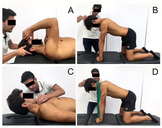 - Cho, J.; Lee, E.; Lee, S. Upper thoracic spine mobilization and mobility exercise versus upper cervical spine mobilization and stabilization exercise in individuals with forward head posture: A randomized clinical trial. BMC Musculoskelet. Disord. 2017, 18, 525. [Google Scholar] [CrossRef] [PubMed]
