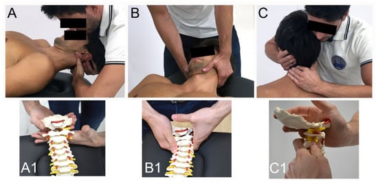 - Rueda, V.G.; López-De–Celis, C.; Barra-López, M.; Uribarren, A.C.; Tomás, S.C.; Hidalgo-García, C. Effectiveness of a specific manual approach to the suboccipital region in patients with chronic mechanical neck pain and rotation deficit in the upper cervical spine: Study protocol for a randomized controlled trial. BMC Musculoskelet. Disord. 2017, 18, 384. [Google Scholar] [CrossRef]