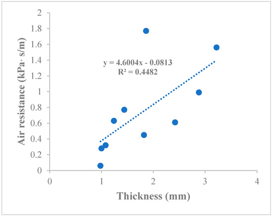 Correlation between thickness and air resistance of mask.
