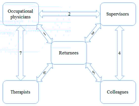 Figure 1 summarizes the findings pertaining to the expectations of the different interviewed stakeholders involved in the RTW process. The study population of returnees represents the center of the figure as the returnee is the only stakeholder who may be in contact with all other stakeholders. There is no connection between the colleagues of the returnee and the therapists of the returnee. We did not intend to investigate those relations, which are usually not existent. All other shown pathways connecting the different stakeholders are described below in terms of mutual expectations.