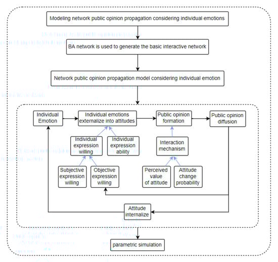 N netizen nodes in the network. Individual emotions are expressed in a three-dimensional array, and individual attitudes are described in a two-dimensional array. The research framework of this paper is shown in