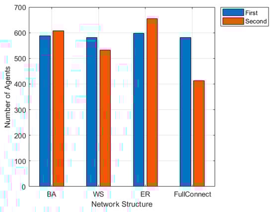 31]. The average path length of a fully connected network is set to 1, and the other average path length of the network structure is similar, so as to analyze the effect of public opinion propagation under different network structures. In order to avoid the influence of interaction times on online public opinion,