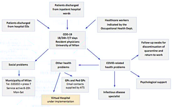 With these premises, a service was set up based on a computer platform that was specially created during the pandemic by the collaboration of the University of Milan, the Health Protection Agency (Agenzia per la Tutela della Salute, Health Protection Agency—ATS) Metropolitan City of Milan and the Local Health and Welfare Agency (Azienda Socio-Sanitaria Territoriale—Local Health Authority, ASST) Fatebenefratelli-Sacco hospitals, and industrial research partners. The aim was to produce a telemedicine service [