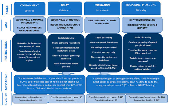 - McDonnell, T.; McAuliffe, E.; Barrett, M.; Conlon, C.; Cummins, F.; Deasy, C.; Hensey, C.; Martin, C.; Nicholson, E. CUPID COVID-19: Emergency department attendance by paediatric patients during COVID-19—Project protocol. HRB Open Res. 2020, 3, 37. [Google Scholar] [CrossRef]