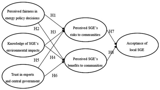 A popular definition of trust was proposed by Rousseau et al. []: “Trust is a psychological state with the extent to accept vulnerability based upon positive anticipation of the intentions or behavior of another.” With limited capacities to evaluate or manage the consequences of SGE, residents have to employ trust as a filter that takes a broad range of available information sources as the input and forms the basis for their affective responses towards SGE [,]. Thus, residents get their cues about the risk and benefit information from relevant actors who implement or regulate the SGE projects. Trust in these relevant actors should have a substantial effect on their risk and benefit perceptions, as well as their acceptance of SGE.