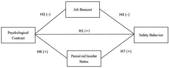 Relevant studies have pointed out that the psychological contract directly determines what kind of work attitude and behavior of employees will take [29]; the individual psychological contract is significantly related to work engagement, and the violation of the psychological contract can predict job burnout and its three dimensions [30]. Resource conservation theory [31] also pointed out that, when individuals face diverse pressures in the organization, they need to mobilize all kinds of resources to cope with them. If the continuous physical and psychological efforts are not supplemented in a timely manner, the physical and mental resources will be consumed and exhausted, which will affect the individual’s ability to deal with the danger. However, empirical research showed that the violation of the psychological contract will cause employees have a series of negative emotions such as job burnout [29], and job burnout has a direct effect on safety behavior [32]. Job burnout will induce psychological diseases [33], thus affecting safety operating procedures and production behavior, which is not conducive to the prevention of COVID-19 in work resumption. Therefore, this study proposed the following hypotheses: