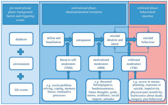 - O’Connor, R.C.; Kirtley, O.J. The integrated motivational–volitional model of suicidal behaviour. Philos. Trans. R. Soc. B Biol. Sci. 2018, 373, 20170268. [Google Scholar] [CrossRef] [PubMed]