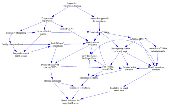 - identify potential feedback loops e.g., improved survival might increase patient willingness to engage with the health system, leading to more opportunities for health workers to learn through experience