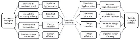 Innovation efficiency can affect the ecological footprint through population aggregation, the industrial structure, the energy structure, and energy efficiency.
