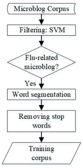 - Building the vocabulary of the flu-related weibo texts: the processing of the text, which means that a specific vocabulary is required;