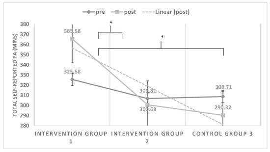 | PA (mins) | 325.81 ± 98.76 | 365.58 ± 64.56 | 306.81 ± 84.57 | 300.68 ± 68.32 | 308.71 ± 85.97 | 290.32 ± 66.36 |