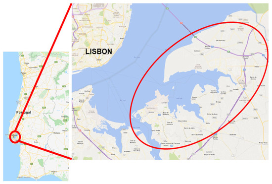 Study population were children aged 0–36 months, born in the Arco Ribeirinho region, in the south bank of river Tagus, Lisbon, Portugal (Figure 1). The choice of this age group was due to the lack of studies and also because this population is more likely to spend more time in the bedroom. The choice of this location was based on convenience and feasibility, since the main author was working in the region’s Public Health Unit. A Public Health Unit is a functional unit of a Healthcare Centers Clusters devoted to all matters regarding public health, epidemiological surveillance, health promotion, and disease prevention. These clusters are a major feature of the Portuguese Primary Health Care network, which include Family Health Units (FHUs) [26]. In these FHUs, several health care services are provided, including child health, maternal health, and pre-labor consultations. This cluster assists four municipalities with a total population of approximately 215,410 people. A total of 6151 babies were born in this region from 2012 through 2014.