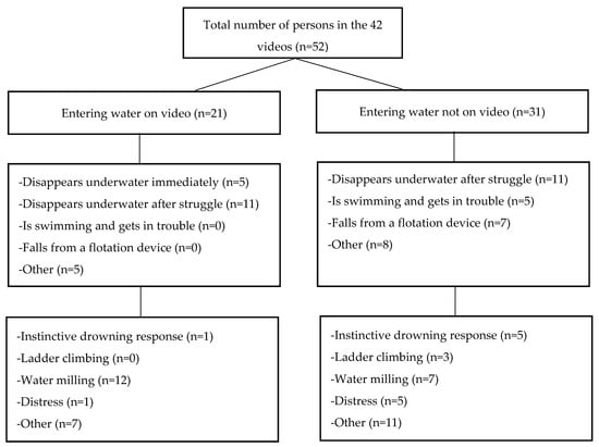 Other remarkable behaviours were identified and are reported for their potential relevance to future research. These include (of the total number of drowning persons, n = 52):