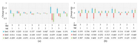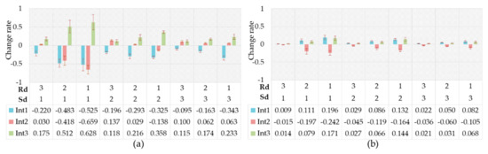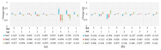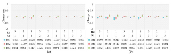 Figure 18a shows the change rates of the driving intention probability between the driver’s relief emotional state and the natural state. As can be seen, the change of driving intention probability caused by relief was insignificant. This seemed to suggest that a driver made rational driving decisions in a relaxed emotional state. However, some researchers pointed out that relief increased driving risk by reducing driver’s awareness of risk [78]. Figure 18b shows the change rates of the driving intention probability between the driver’s pleasure emotion state and the natural state. The probabilistic variation of driving intention in the pleasant emotional state was similar to that of relief, while the change degree in the pleasant emotional state increased slightly.