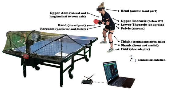 - Bańkosz, Z.; Winiarski, S. Using wearable inertial sensors to estimate kinematic parameters and variability in the table tennis topspin forehand stroke. Appl. Bionics Biomech. 2020, 8413948. [Google Scholar] [CrossRef] [PubMed]