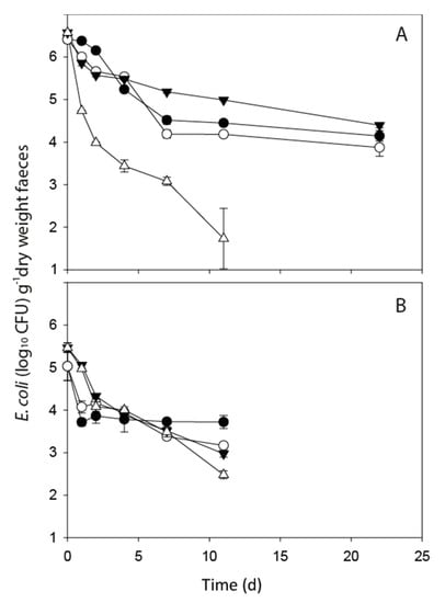 - Porter, K.D.; Quilliam, R.S.; Reaney, S.M.; Oliver, D.M. High resolution characterisation of E. coli proliferation profiles in livestock faeces. Waste Manag. 2019, 87, 537–545. [Google Scholar] [CrossRef] [PubMed]